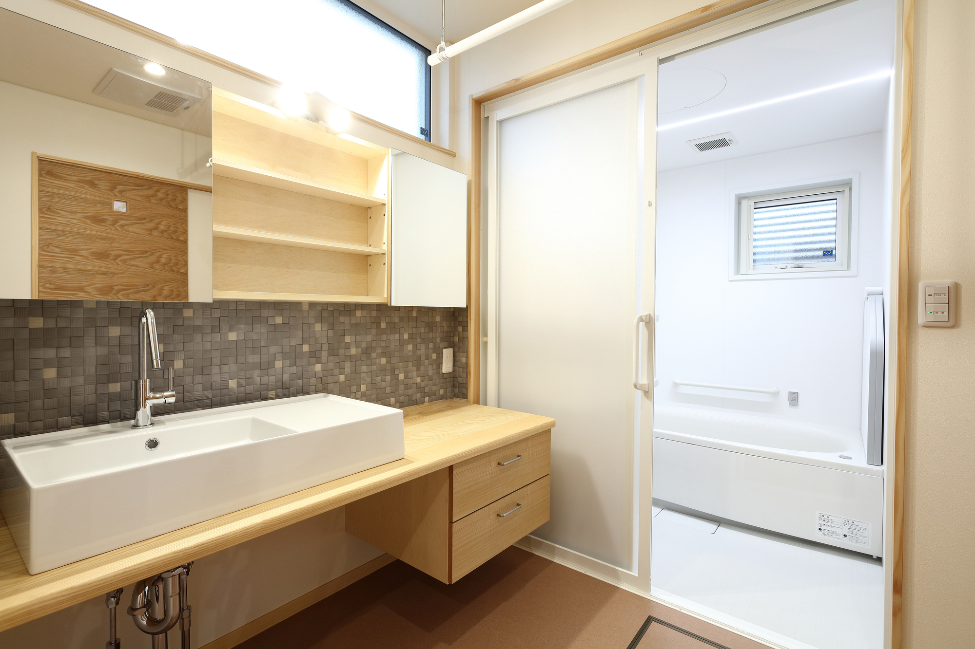 ユニットバスと洗面台はどちらもタカラスタンダードで揃えることで、統一感と高級感のある仕上がりになりました。