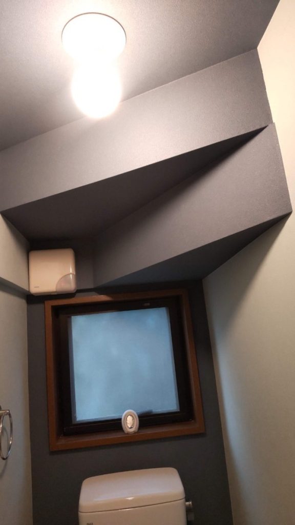 壁に埋め込んである収納棚もいっしょに撤去させて頂き、手すり付き紙巻器を設置し